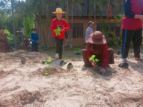 พร้อมได้มอบต้นกล้าให้ผู้นำชุมชน ชาวบ้านเพื่อส่งเสริมการสร้างความมั่นคงทางอาหาร ลดรายจ่ายในครัวเรือน