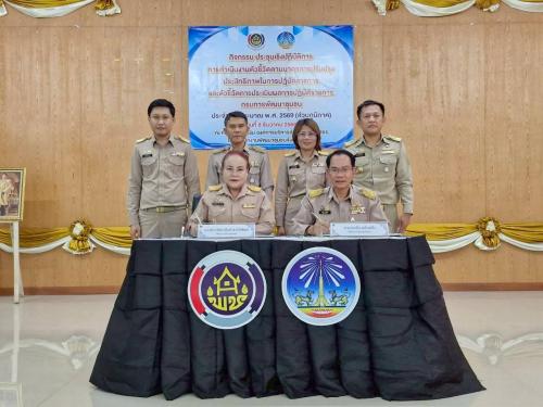 พิธีลงนามคำรับรองการปฏิบัติราชการ ระหว่างพัฒนาการจังหวัด ฯ ผู้อำนวยการกลุ่มงานทั้ง 4 กลุ่มงาน และพัฒนาการอำเภอทั้ง 9 อำเภอ เป็นพันธสัญญาร่วมกันเพื่อว่าจะมุ่งมั่นปฏิบัติราชการให้เกิดผลงานที่ดี ตามเป้าหมายของตัวชี้วัดแต่ละตัวในระดับสูงสุด เพื่อให้เกิดประโยชน์สุขแก่ประชาชนตามที่รับรองไว้